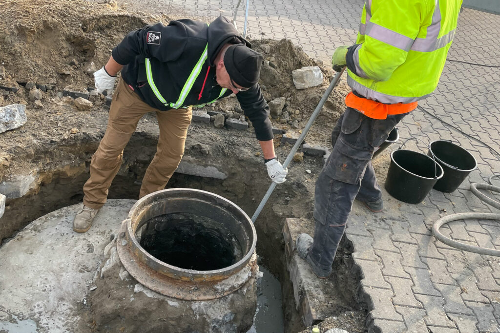 Iniekcja mineralna gruntu wokół uszkodzonych kręgów studni.